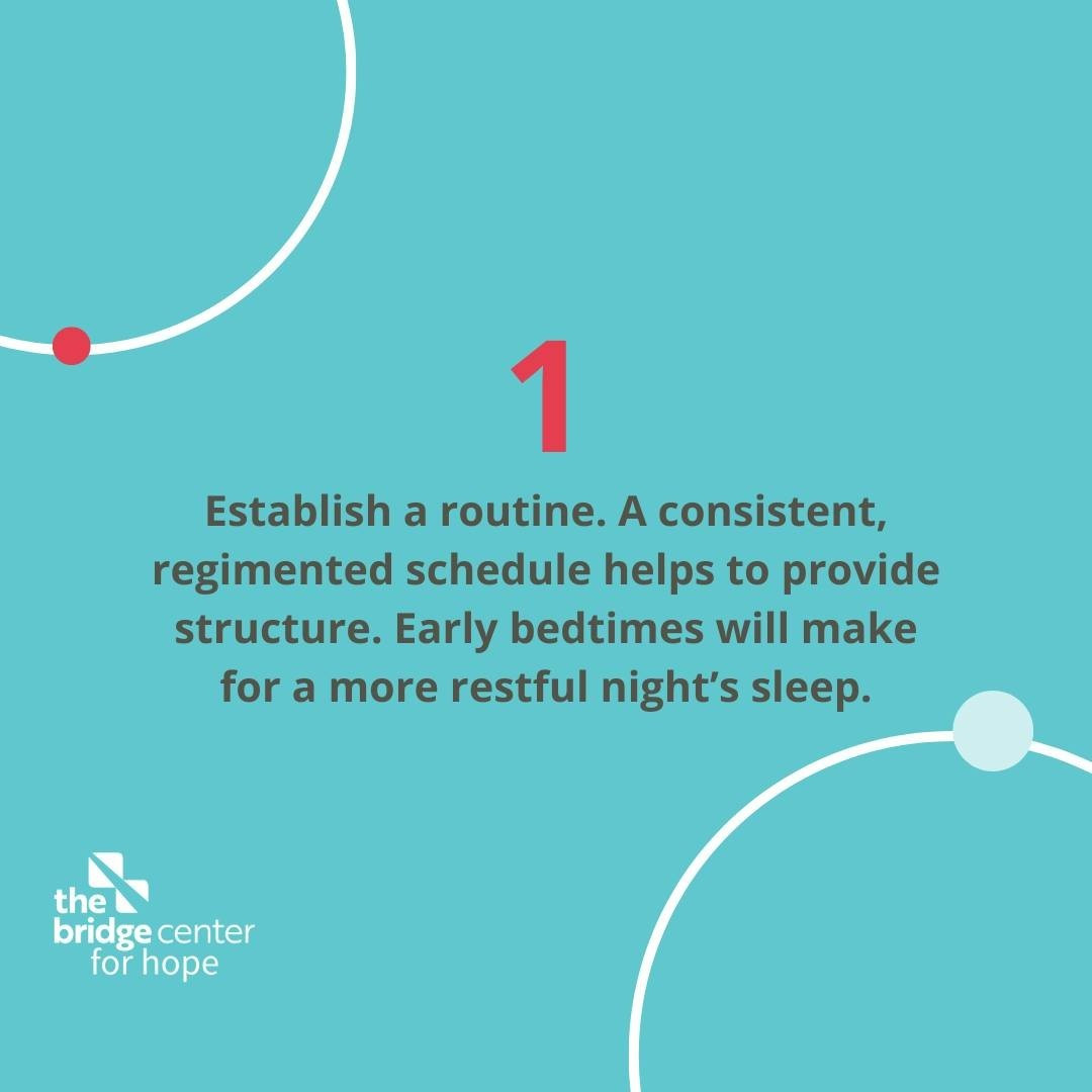 A consistent, regimented schedule helps to provide structure. Early bedtimes will make for a more restful night's sleep.