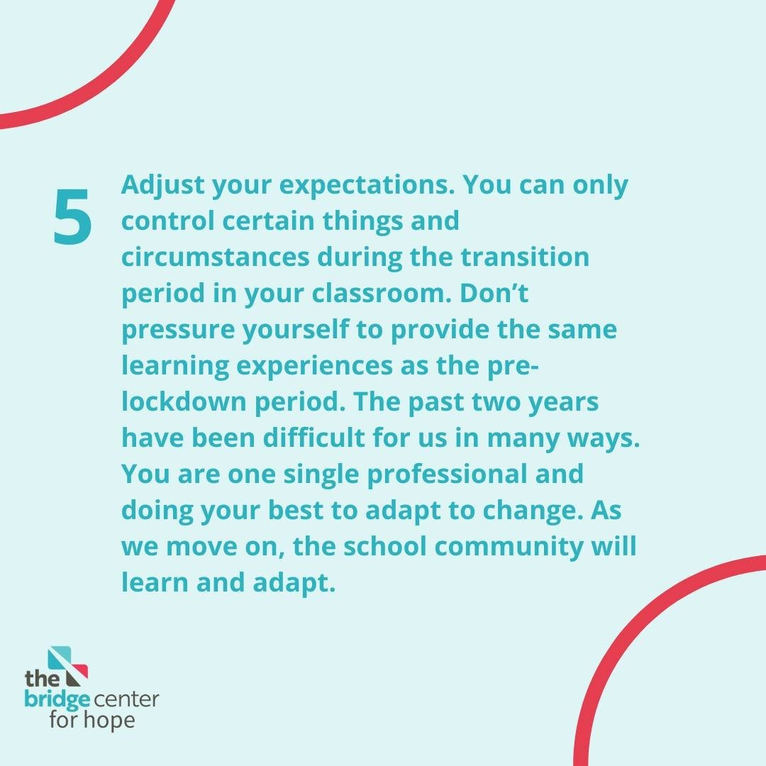 As schools reopen, there could be a million things on your mind about how to engage with students and help them with the transition. Make a list of all your tasks and activities for the day or week early on. Use a day planner or notebook to plan your week. Set small goals and take appropriate breaks. It will help you plan your time better and alleviate the stress of having too many unplanned things to do.